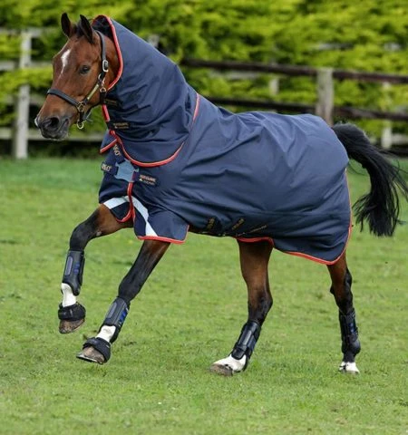 - Leg arches, reflective strips, 3 cross surcingles, shine enhancing polyester lining, hood and liner loops.