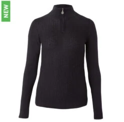 The knitted B Vertigo Ruth jumper is a classic piece for your riding wardrobe. The soft cable woolmix knit keeps you warm, and the high neck is adjustable with a zipper. It is perfectly combined with a padded vest, and will keep you warm on winter rides.