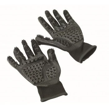 The Equissential Ultimate Grooming Glove is one glove that does it all! Shed, scrub, massage, or curry. Use wet or dry. Hook and loop secure wrist. Sold in Pairs. Black.