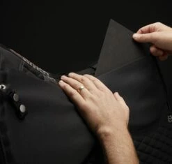 With industrial strength velcro sewn directly onto the spine of the saddle pad its never been simpler to achieve unrivalled levels of comfort & freedom under saddle. The low profile “streamline” design minimises movement between the saddle and saddle pad, whilst locking the spine into the gullet of the saddle. This considerably reduces heat, friction and pressure throughout this vulnerable area.