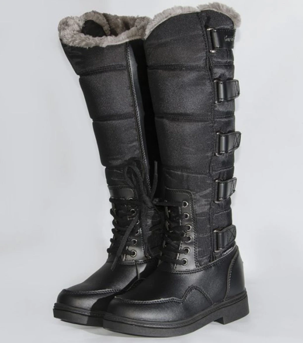 These tall winter riding boots by Horse Tech International are sure to keep your feet warm and cozy during your winter rides. Fully insulated with heavy duty velcro calf tabs Front lacing at the ankles add the stability of paddock boots and the velcro tabs along the sides open up wide to make it easy to put on your boots. The new shaped calf is very comfortable and the laced-up ankle allows you greater flexibility than any other boot on the market. They feature a waterproof membrane and a thick fleece lining in the footbed.