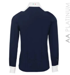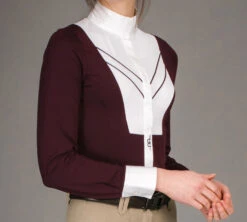 Luxury ladies competition shirt with standing collar and breathable mesh competition bib to front. Removed shoulder seams for maximum comfort. Full length button fastening to the front, with a magnet to fasten collar with ease. The luxury stretch fabric provides a comfortable performance fit, and is soft to the touch. Collar and cuffs are cotton for a classic finish.
