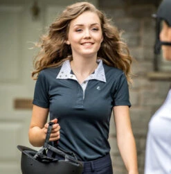 This lightweight show shirt with added technical features is a perfect choice for competing in hot weather. The short sleeves with mesh panels improve airflow, while the Nanotex® fabric offers maximum breathability and UPF 30+ protection from the sun. This quick-drying top features a fitted style and a classy collar with hidden snap buttons for a smooth and polished look under your show jacket.