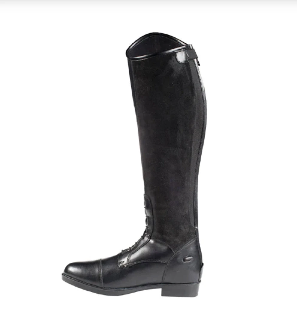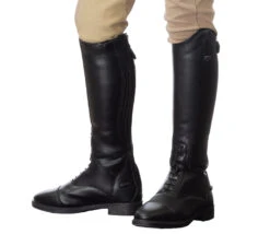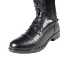 These tall boots are made from soft synthetic leather with breathable mesh lining. Elastic front laces look classic while a back zipper offers easy access. A comfortable sole makes them wearable all day long – in the saddle, paddock or around the stable. The classic style is timeless and matches little riders’ outfits perfectly.