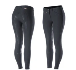 The Horze Women’s Grand Prix Full Seat Breeches with Silicone Grip are great breeches whether you’re riding in a clinic, weekly lesson, or a show jumper arena. These new and improved classic breeches will add a professional touch to your look. The Grand Prix style is a trusted choice of top athletes and for equestrians of all disciplines. The cut is elegant, formal, and timeless. The silicone full seat provides great grip for added security in the saddle. A comfortable, contoured medium waistband adds to the whole package and you will choose these breeches when you want to look and feel your best. The Women’s Grand Prix Silicone Grip Full Seat Breeches, by Horze, are made from a new functional, breathable fabric that has a water and dirt repellent surface. Dust and grime won’t stick to these ultimate show breeches. These stylish and functional riding pants include UV protected fabric (UPF 50+).