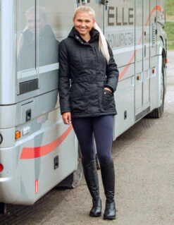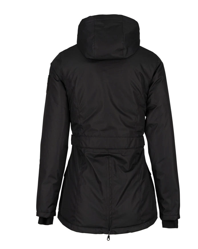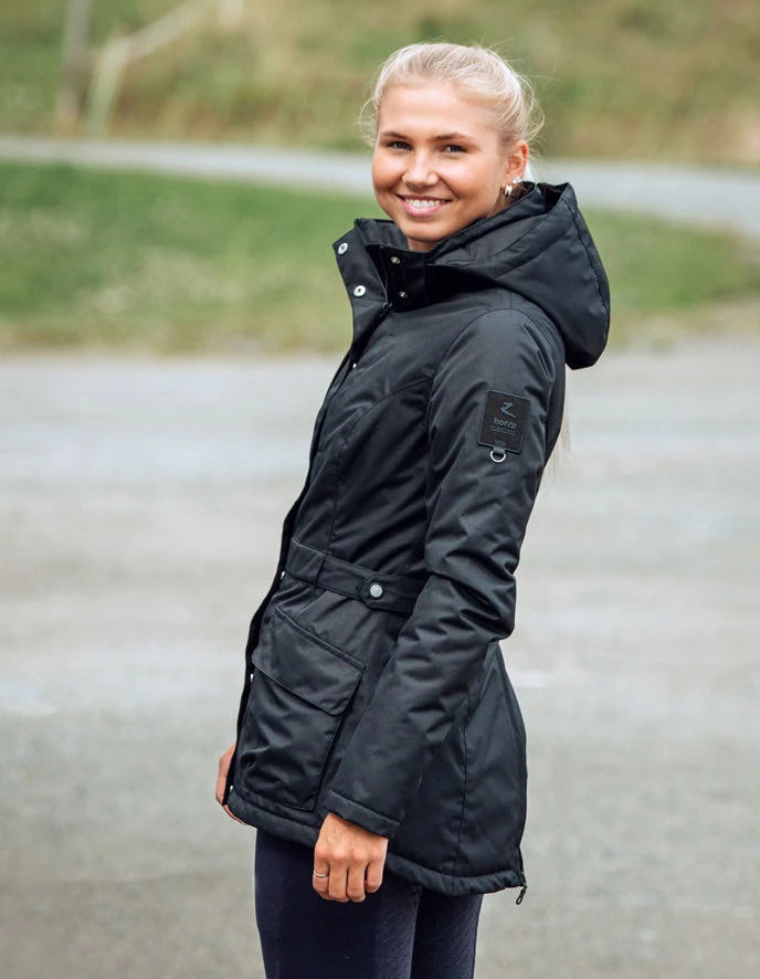 Our Jadine winter jacket is made from durable waterproof material. It is lightweight, but also warm. Breathable fabric keeps you well ventilated while riding. A zipper at the back ensures space when riding. The hood is detachable. Zipper pockets are perfect for your phone and keys.