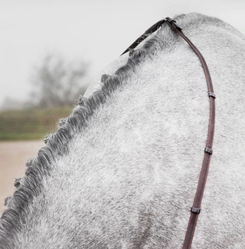 Narrow intertwined reins are coated with a light rubber grip to add control without bulk.