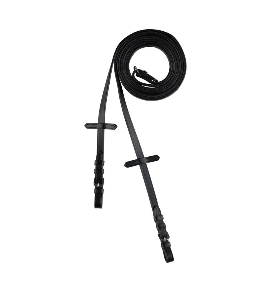 Elegant, Quality & Functional. These slim reins are made from leather with rubber on the inside that ensures easy cleaning and a safe grip. Stainless steel buckles are durable and easy to adjust to any bridle.