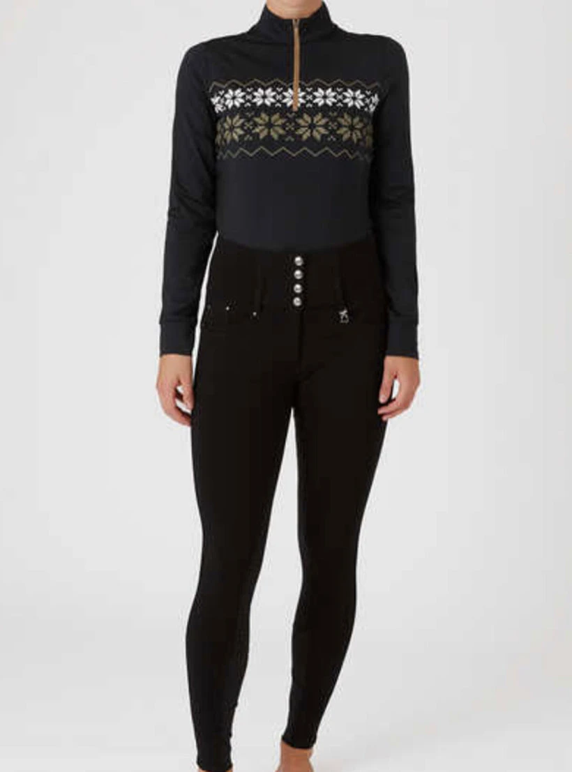 The high-waist Horze Tara breeches are a must-have for your riding wardrobe. Horze is proud to launch them as mid season version! With a classic zip and 4-button closure, this style is the ultimate choice for combining comfort and a perfect silhouette. The ultra high-waist provides both a snug fit and an extra slimming look, along with extra support. The warm fabric with brushed inside is soft and comfy, with just enough stretch.