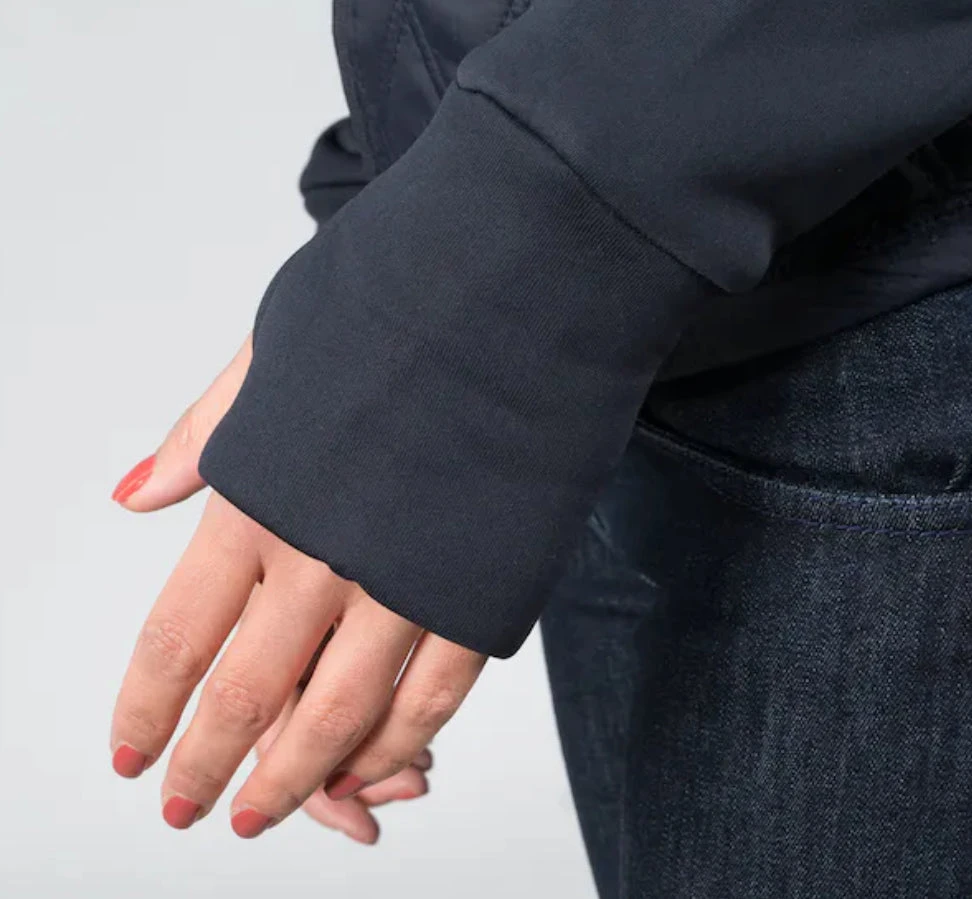 - Wide stretch cuffs with a thumb hole to retain warmth