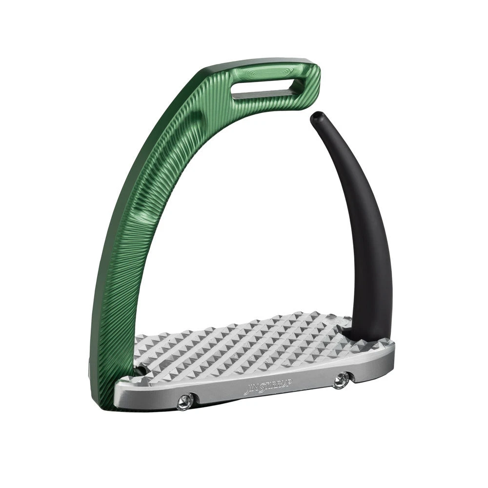 The JIN AIR Stirrup is the most innovative safety stirrup on the market. This technical stirrup features an Anatomic Stirrup (ergonomic) footbed. The safety release is a patented and smart mechanism that is firm enough to hold the foot in place during riding, but allows for a full escape when necessary.