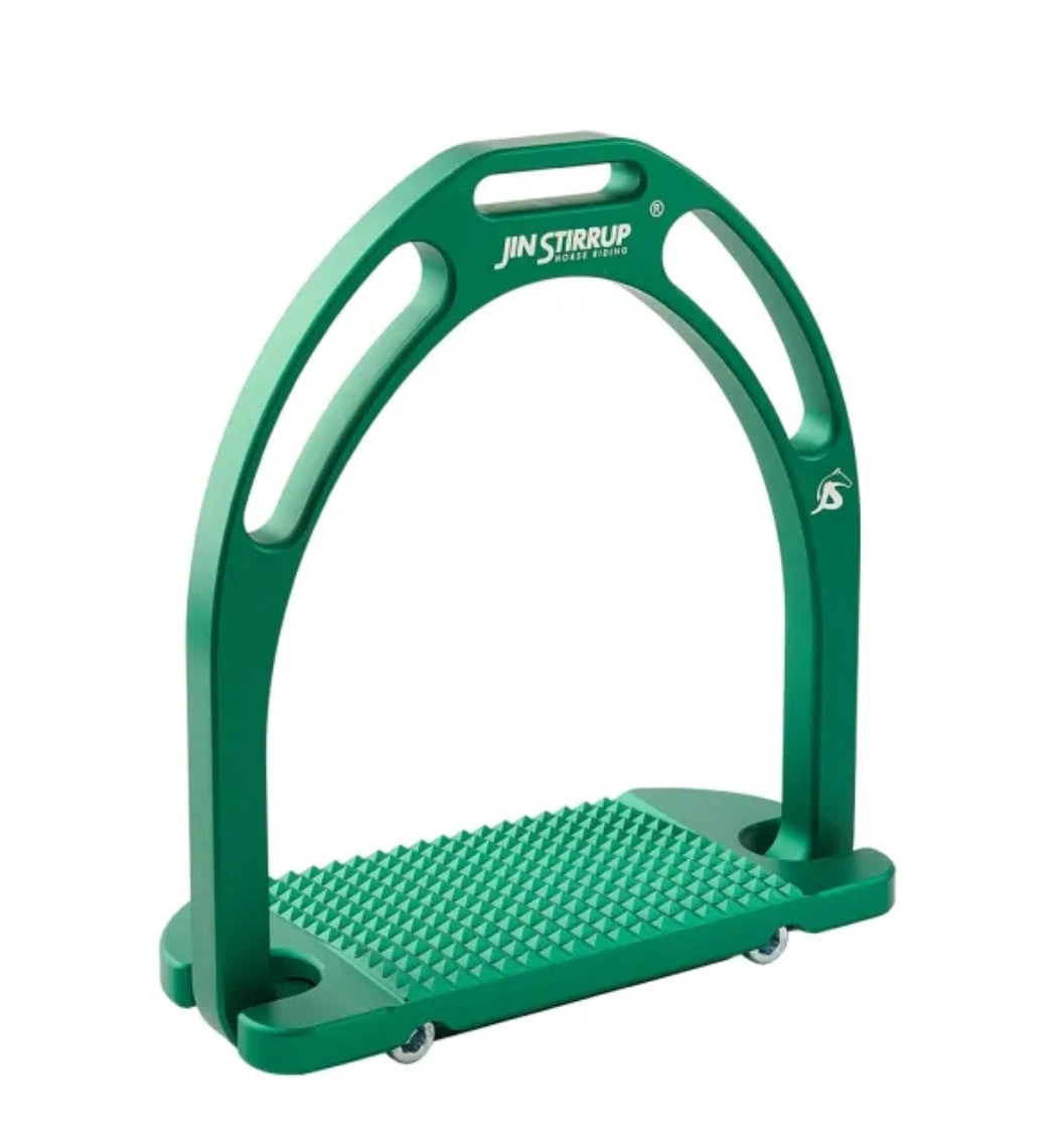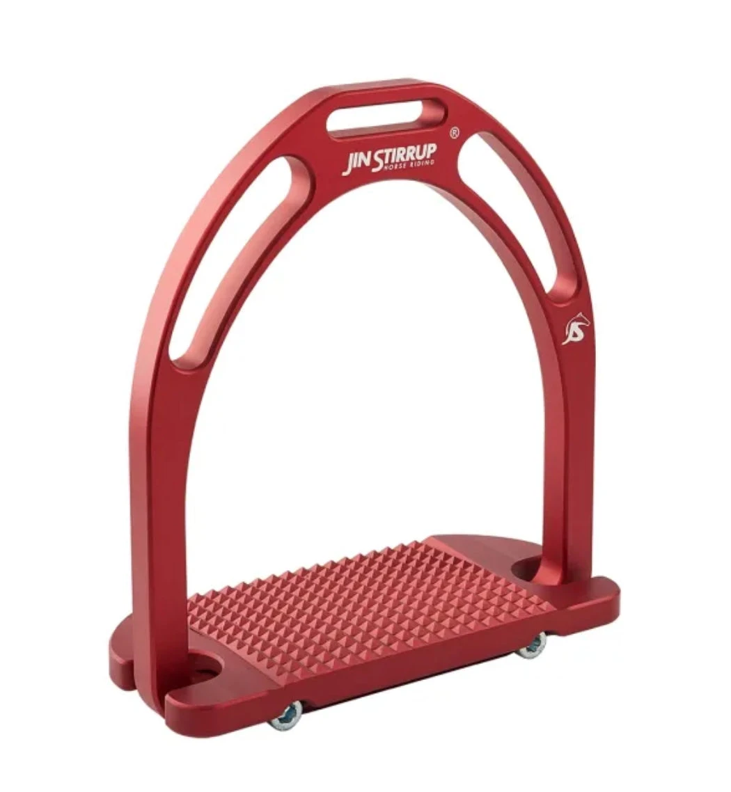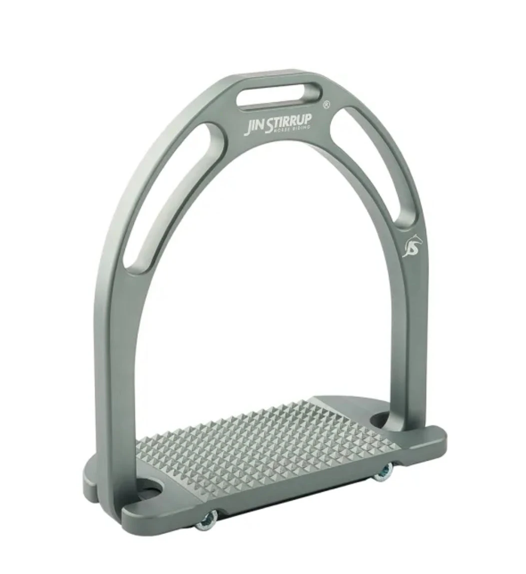 JIN Stirrups are 100% made in Italy, using top quality aluminum. The stirrup pad, inclined at 4 degrees from back to front, ensures excellent grip and maximum stability. The stirrups weigh less than 300 grams each – providing knee joint relief, and the wide footpad distributes the rider’s weight over a greater surface area, increasing circulation to the toes.