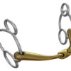 this Kimberwick single-jointed snaffle bit is made of a stainless steel with slotted rings. The mouth of the bit is jointed with a curb chain and hooks for added leverage.