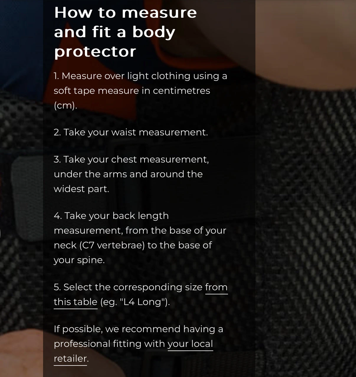 To maximise protection, body protectors need to be close fitting but bodies grow and develop in very different ways.