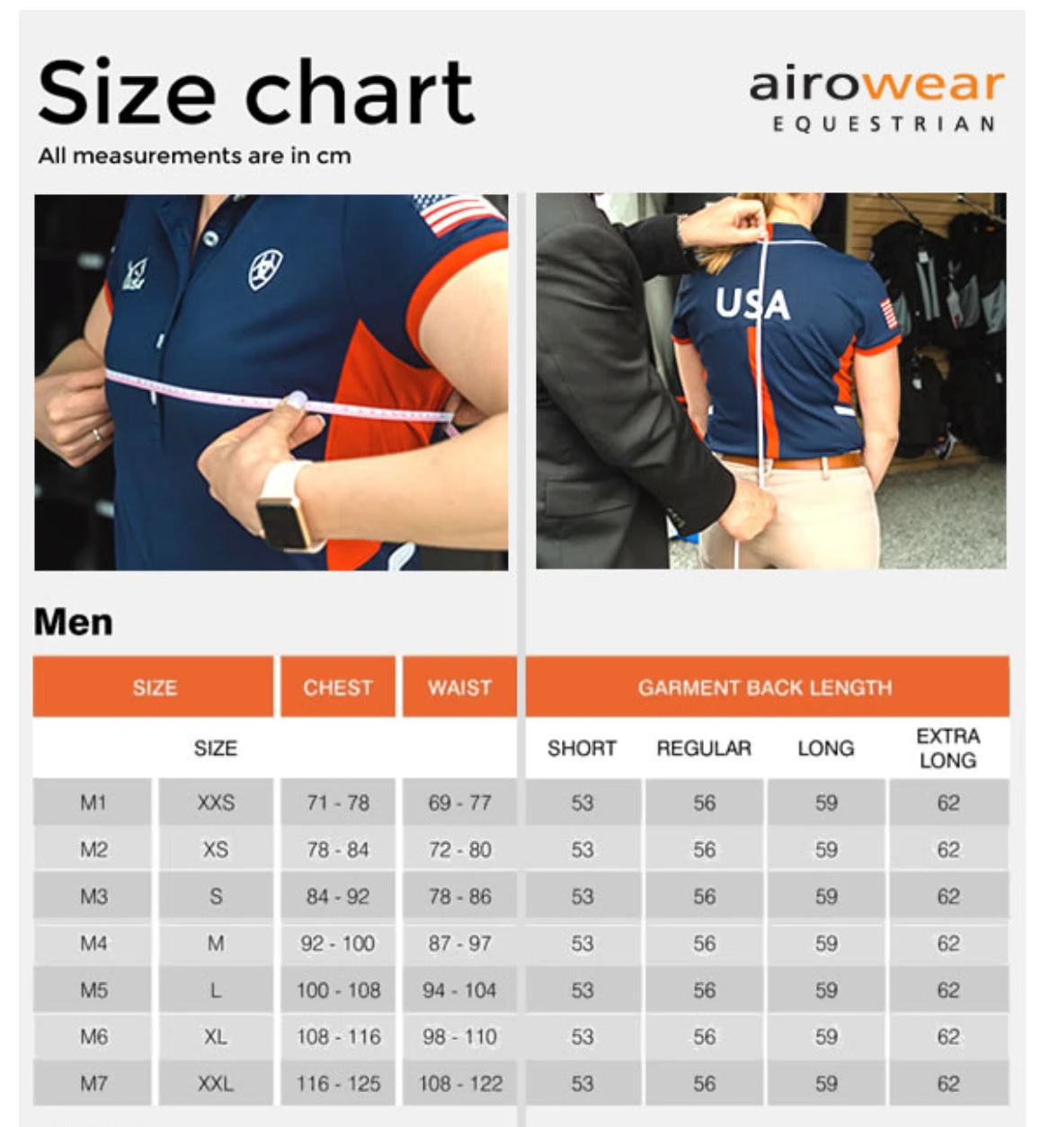 - Gender-specific size range