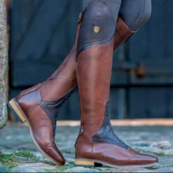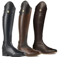 Traditional and timeless, the Mountain Horse Sovereign Field Boot offers a more comfortable heels-down position with the unique Prolaze-Flexnotch Technology. Strong and durable full length YKK Vision zipper in back, snap upper keeper at top of boot, durable hidden elastic along the side of the zipper for a comftorable fit, soft premium selected genuine leather lining. Spanish cut top, Shock-X Advanced insole, protective heel cover with snap to safeguard your zipper, spur rest, exceptional High-Density outsole with grip responsive ripple zones for increased performance.