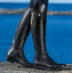 A fun and fashionable update on our best seller, the Sovereign LUX features all the fantastic features of our classic Sovereign Boot, with the addition of a patent crocodile top cuff. Material: Full grain leather. Lining: Smooth full grain leather. Complimentary Mountain Horse® inflatable boot trees and boot bag included in box.