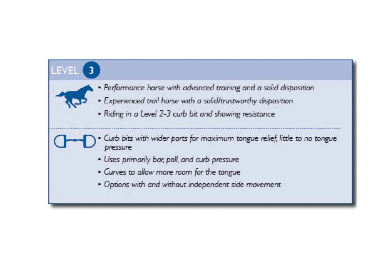 The MB 33WL (wide low) mouthpiece was made specifically to meet the requirements of the USEF dressage rules, making this the only USEF dressage legal Level 3 mouthpiece. The port is 29mm high and generously wide, providing ample room for the tongue. Because the port is lower than the standard MB 33, the MB 33WL does not offer quite as much tongue relief but it is by far the most tongue relief available in a dressage legal mouthpiece.