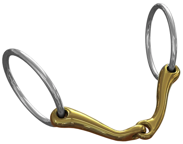 Although single jointed, this bit is ergonomically designed to eradicate the ‘nutcracker’ action and consequent problems that the traditional straight-armed single jointed snaffle often causes.