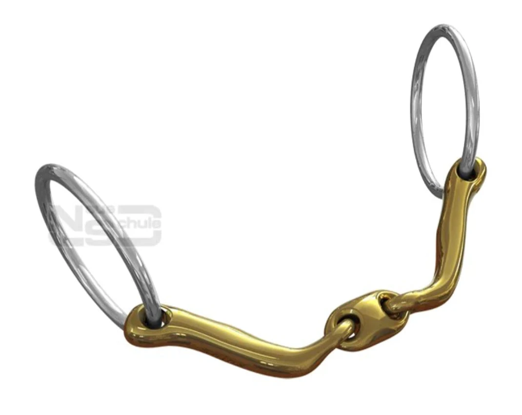Greatly clarifies and emphasises the signals through the rein. Promoting self carriage and throughness, a true outline and freedom through the shoulder can be developed. The Verbindend has consistently helped eradicate tongue evasions, encouraging the horse to soften and relax through the jaw. The cleverly curved mouthpiece can also enhance the development of the bend for lateral work and smaller circles. This dressage legal snaffle is not severe, so if you are a pleasure rider and simply wish to lift the forehand then this bit is a logical choice.