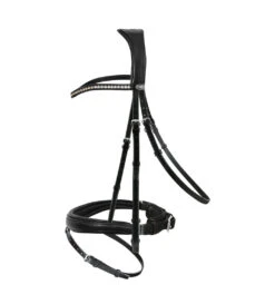 The attractive Atlas Snaffle Bridle is setting a new standard in terms of horse-friendliness. The head piece and the Caveson Special with flash noseband are anatomically-formed and softly padded. The result is a comfortable, flat-lying snaffle bridle, which effectively relieves pressure. The waved browband with large Premium Crystals in Clear Crystal adds a beautiful sparkle. Available in Black with stainless steel fittings.