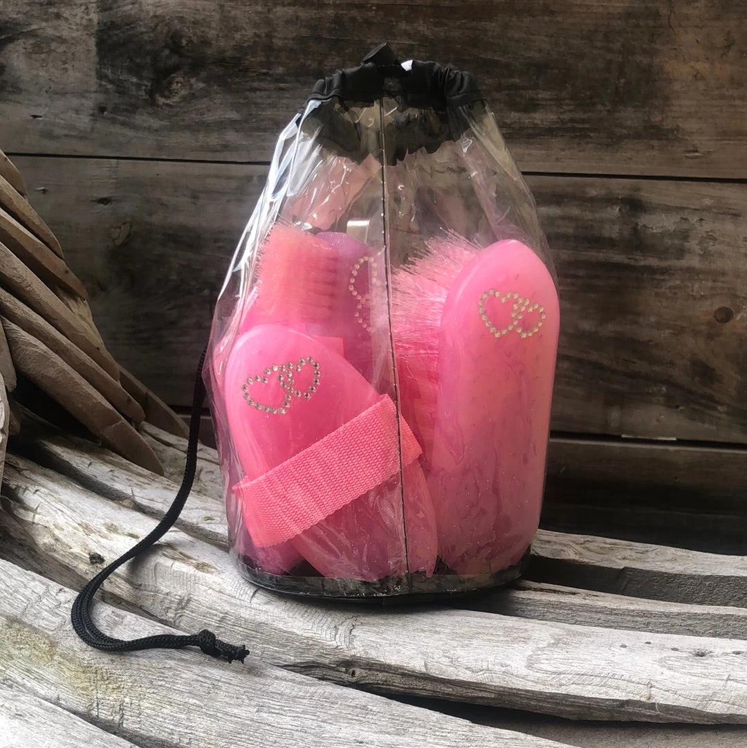 A great starters’ grooming kit all in a little clear plastic carrying bag by Premier Equine.Â