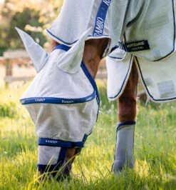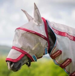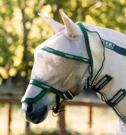 Made from an extremely durable textilene outer, soft polyester ear material and comfy fleece edging for the ultimate protection against flies and the damaging effects of sunlight. With an improved design for optimum eye protection, detachable nose protection, large fitting soft ears, adjustable closures with elastic to allow the horse to graze comfortably.