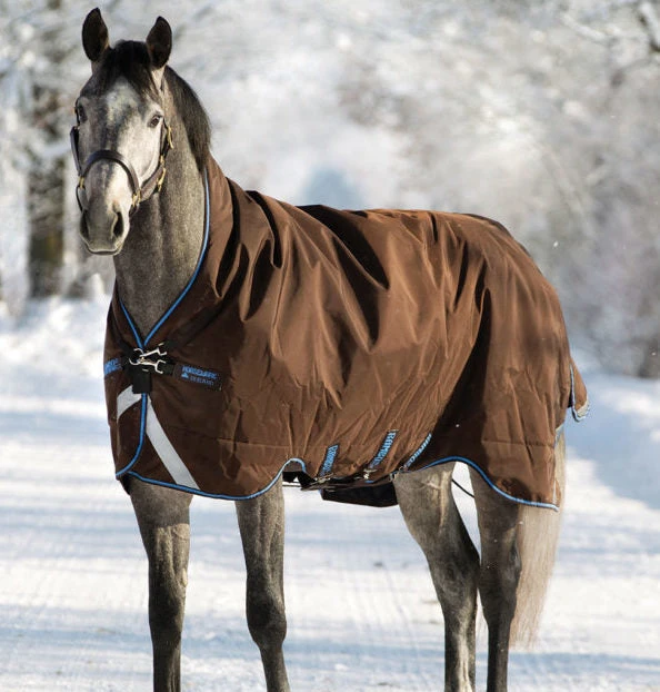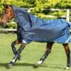 The Rambo Wug with Vari-Layer is designed to give more warmth with less weight and has a high Wug style neck – specifically designed for narrow horses with high withers. Cut from the strongest and most durable turnout material on the market – Ballistic nylon, this rug is waterproof and highly breathable. Features of this rug include high cut neck to give a snug fit and elimenate wither pressure, V-Front closure to give freedom of movement to graze, leg arches, reflective strips, wipe clean tail cord, three secure cross surcingles, and shine ehancing polyester lining.