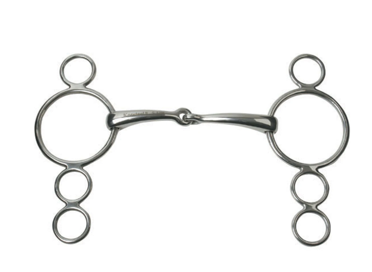 3 Ring, singled jointed Elevator offers leverage options and applies pressure to the lips, tongue, and bars of the mouth. Stainless Steel.