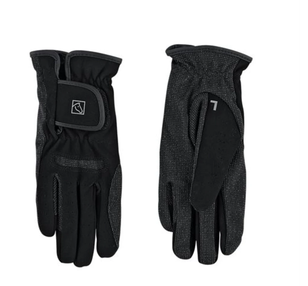 The SSG® Schooler Glove offers good grip with pimpled rubber on the palm and rein contact areas. An articulated area over the knuckle is elasticized for comfort. Elastic wrist with hook-and-loop closure. An “L” and “R” on base of left and right thumbs ensure easy identification. An economical, durable and comfortable riding glove!