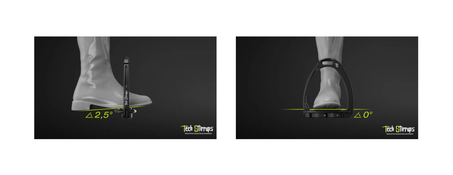 Thanks to the Tech Stirrups safety mechanism, the foot has to get the moving part open in case of fall, and this part then goes back to closed position automatically.