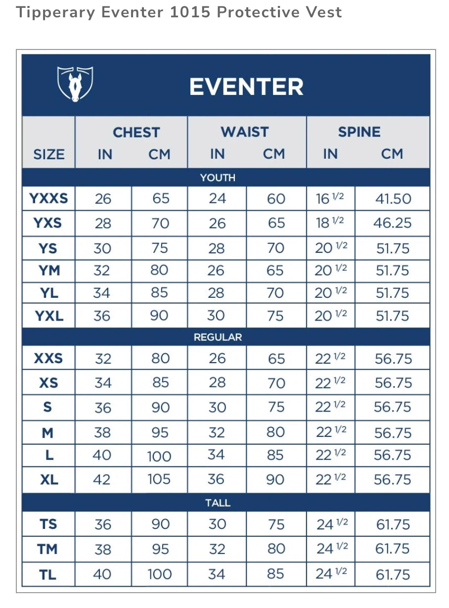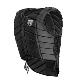The Tipperary Eventer Equestrian Safety Protective Vest offers upper body protection for riders of all levels without restricting movement. The lightweight, dual density foam segments provide a high level of impact reduction. The patented FLEX construction ensures maximum mobility, a comfort fit and superior air circulation. The full-length zippered front closure allows for easy on and off and the side laces provide a personalized fit. Riders will experience improved posture. Angled at the front, the Eventer accommodates various rider positions while the extended back covers the tailbone. The shell is covered in lightweight and breathable Durasport for long-lasting wear and easy care. Features a soft roll collar for added comfort. Available in regular, tall and youth sizes for young riders as well as petite adults.