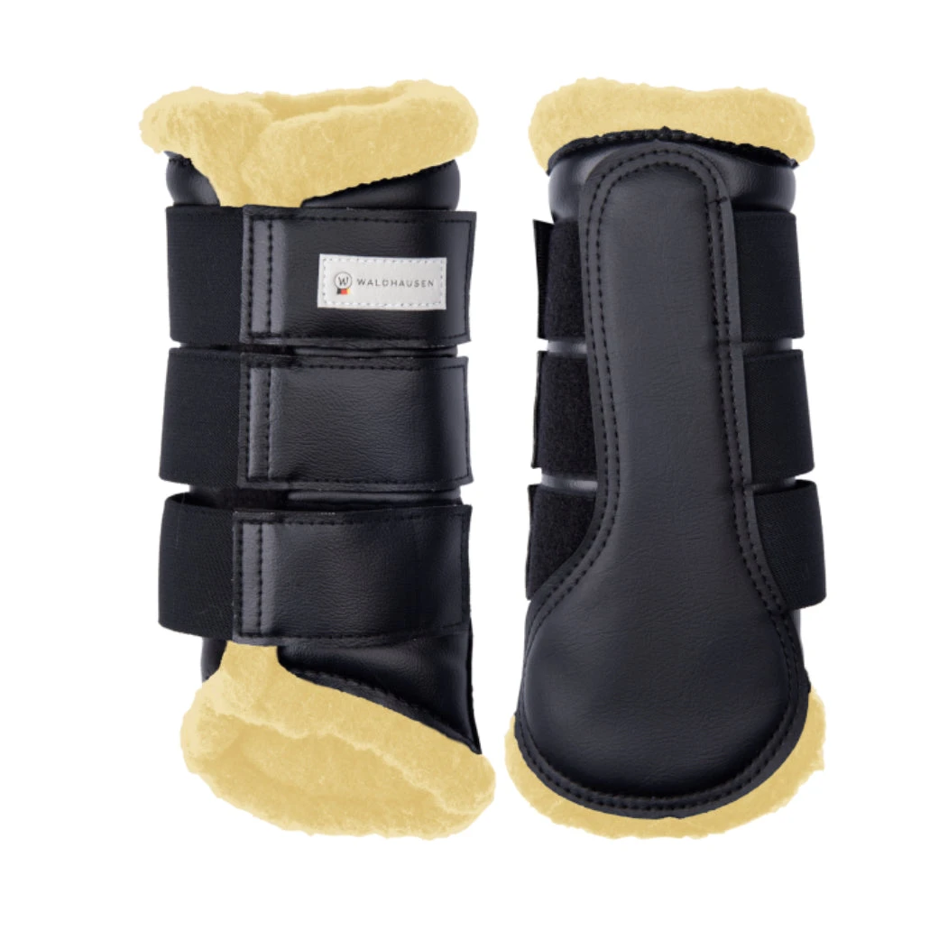 Soft Dressage Schooling Boots from Waldhausen offer full coverage and a soft, comfortable feel for your horse. Waldhausen dressage boots are a synthetic leather and fleece with 3 wide velcro straps. The pair of boots can be used on front or hind legs.